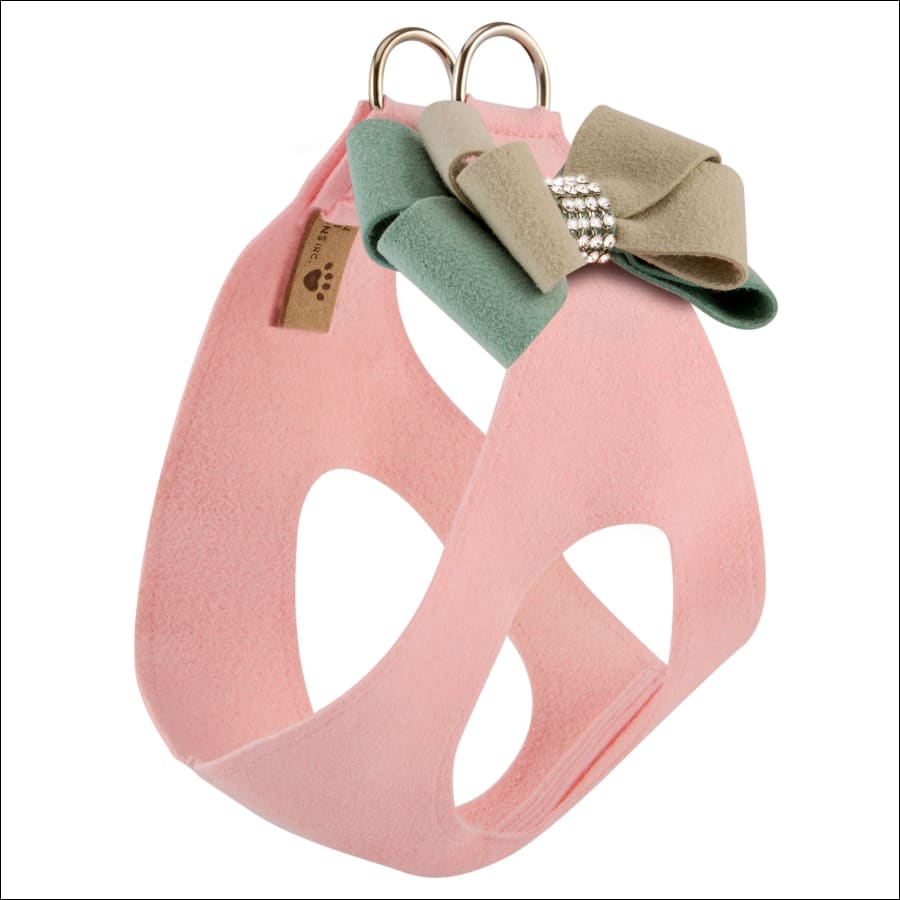 Elegance and simplicity reign with the soft Hope Bow. The double Nouveau Bow is centered with genuine Swarovski Crystals. The harness fastens by a single quick-release buckle located above the dogs’ shoulders and is cut well below the dogs’ neck so the pulling is across the shoulders and not the neck. The end result is pure comfort for the dog. Easy for you to maintain, this harness is made from genuine commercial upholstery grade Ultrasuede® fabric that we import from Japan. This soft, comfortable fabric is breathable, washable and colorfast. Like all our other products, made in USA.